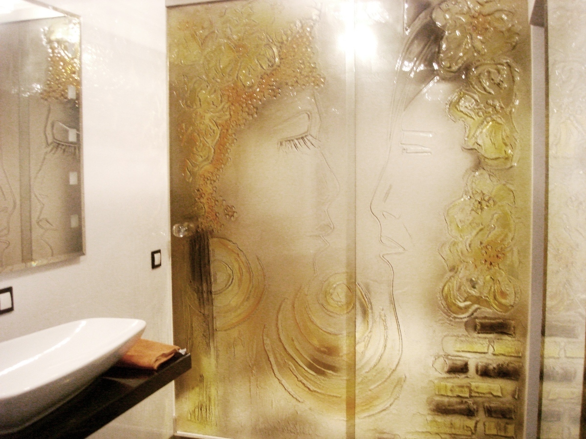 Szklane. Skrzydła mogą mieć wąskie ramy aluminiowe albo drewniane, ale mogą też być bezramowe: taką bezramową taflę szkła zawiesza się bezpośrednio na zawiasach, a zamiast klamki stosuje pochwyt. Aby drzwi były bezpieczne, wykonuje się je ze szkła hartowanego lub klejonego. Zbita szyba hartowana rozsypuje się na kawałki o nieostrych brzegach, a folia zabezpieczająca szkło klejone zapobiega jego rozsypaniu się.